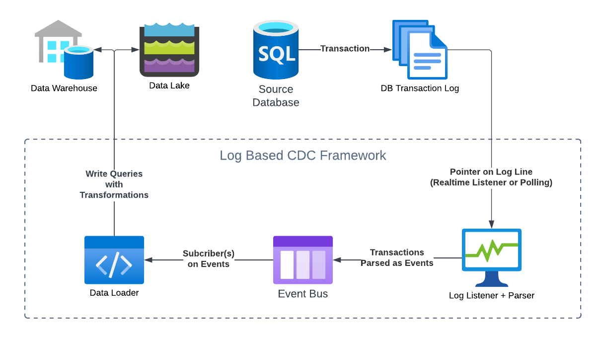 The exact terminology and architecture will differ from framework to framework, but the general flow should remain more or less the same for all log-based CDC systems.